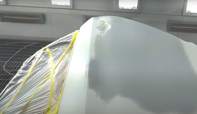 그러면 정식 도색과 어떤 차이가 있는지를 살펴보면 우선적으로 정식도 색은 전용 도색 부스 안에서 도색이 진행이 되며 먼지가 없고 도색 전용 조명이 있는 부스 안에서 작업이 이루어지니 아무래도 더 꼼꼼히 살펴볼 수 있는 특징이 있었습니다.