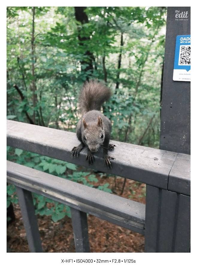 청설모가 자꾸 저를 따라 다니길래 몇 장 찍어 줬습니다. 사실 꽤나 많이 찍었지만, 얘가 생각보다 너무 가까이 다가오는 바람에 렌즈의 최소 초점 거리를 넘어버려서 다 제대로 나오지는 않았고 이 사진 한 장만 겨우 건졌습니다. 필름 카메라 모드에서는 뷰파인더에서 초점이 제대로 잡혔는지도 확인이 어려운 상황이 이따금씩 펼쳐지기도 했습니다.