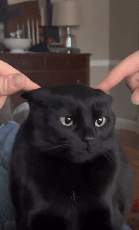 주인이 계속해서 손길을 멈추지 않자, 고양이는 천천히 눈을 반쯤 감았다가 다시 크게 뜹니다. 감정을 정리하는 중인지, 아니면 그저 혼란스러운 건지 알 수 없지만, 확실한 건 이 순간을 어떻게 받아들여야 할지 전혀 모른다는 것입니다.