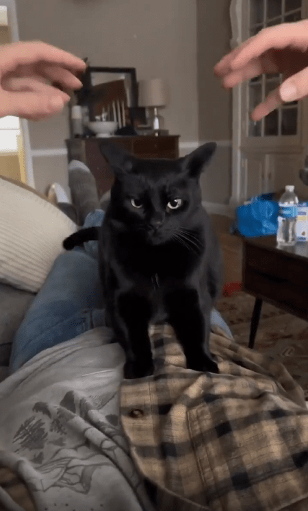 사실 고양이들은 처음 경험하는 감각에 대해 혼란스러워하면서도, 익숙해지면 곧 좋아하는 경우가 많습니다. 이 검은 고양이도 처음에는 당황했지만, 시간이 지나면 아마 스스로 다가와 쓰다듬을 요구하는 날이 올지도 모릅니다.