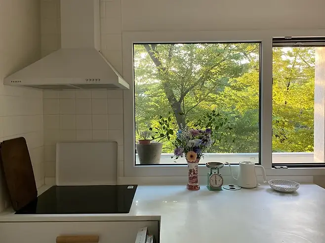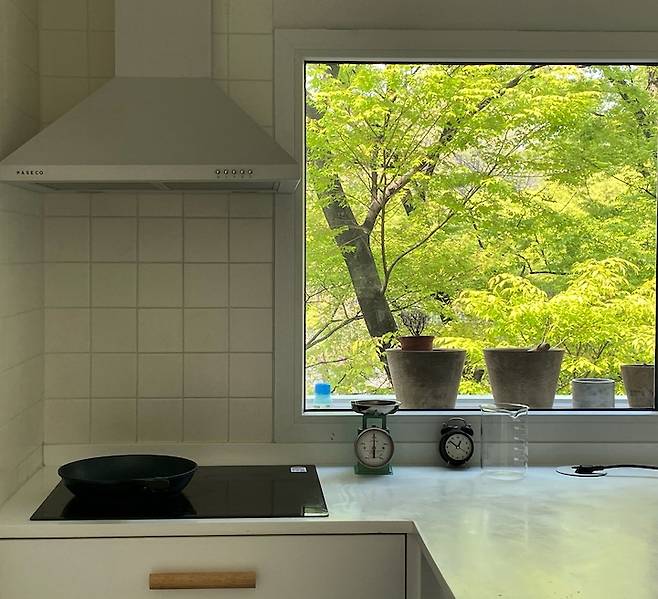 덕분에 사계절을 느끼며 요리할 수 있고, 환기도 잘 돼 제일 잘한 시공 중 하나라고 생각합니다.
