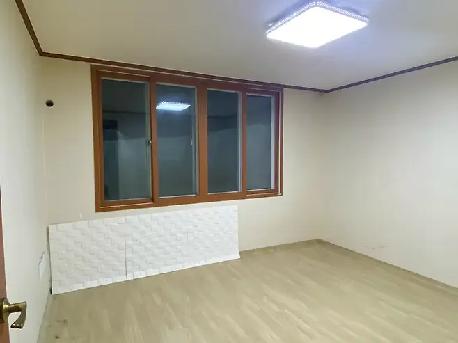 불필요한 장식을 하지 않고, 바닥은 백색 몰딩, 천장은 마이너스 몰딩으로 시공했습니다. 비포사진과 비교하면, 창과 조명이 크게 분위기를 좌우한다는 것을 알 수 있습니다.