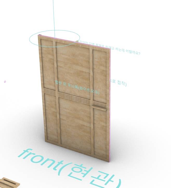 오크 원목으로 이뤄진 문은 양쪽 모양을 다르게 디자인했습니다. 방을 바라보는 면은 오크의 결이 보이는 원목이 보입니다.