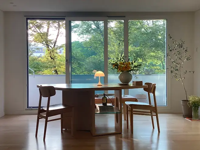 특히 테라스 창을 바꿔 달기 전에도 이런 예쁜 풍경이 한눈에 들어왔는데, 한눈에 더 잘 담고 싶어서 시스템창호로 교체하였습니다.