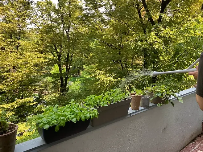 근경(내 눈 가까이)에 초록이 있으면 원경(풍경)의 초록을 바로 내 앞으로 끌고 오는 효과가 있습니다. 침실 가까이 더 자연을 끌어오기 위해 침실 앞 테라스에 화단을 꾸몄습니다.
