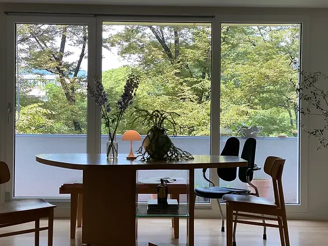 큰 창문 덕에 이렇게 계절감을 느낄 수 있습니다.
