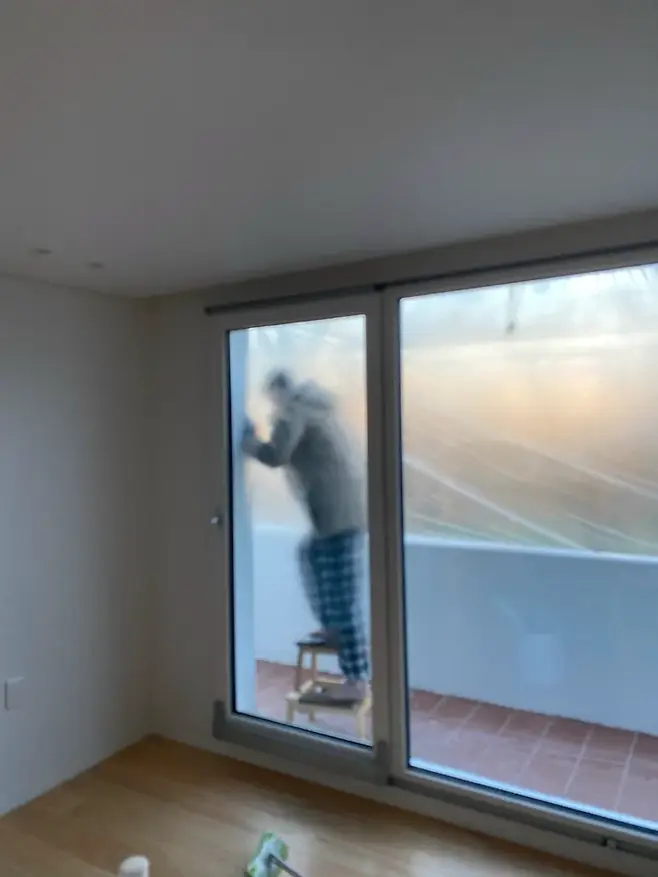 하지만 베란다가 테라스가 되고 나니, 비가 오면 집에 그대로 비가 들이치는 꼴이 되었습니다. 공사 진행 중에 비가 오는 날이면 아랫집에서 물이 샌다며 연락이 올 정도였습니다. 이렇게 실내공간이었던 곳은 방수가 잘 되어있지 않기 때문에 우선 방수를 두텁게 만드는 공사를 시작했습니다.