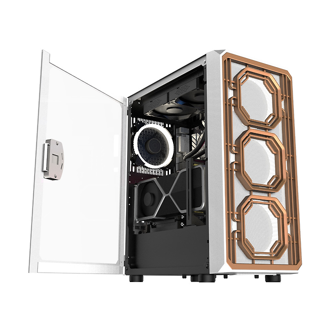 한국의 미를 가장 잘 표현한 케이스를 꼽으라면 단연 마이크로닉스 GM3-문(실시간 45,990원)이다. 디자인이 마치 경복궁이나 창덕궁같은 고궁 문살을 보는 듯하다. 보통 우리나라 사람들은 국뽕에디션(호소) 디자인을 별로 안 좋아하는데, 이 제품은 디자인이 워낙 잘 뽑혀서 기존에도 평이 좋았다. 겉만 그럴싸한게 아니라 기본기도 좋은 편. 강화유리 스윙도어, 140mm 대형 팬 4개 기본 장착, 내부 레이아웃도 최신이다.