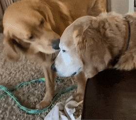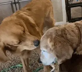 그래서 어린 골든 리트리버는 이전에 무언가를 알아차리고 나이 든 리트리버의 눈을 핥아서 고통을 덜어주고 싶어 했던 것입니다.