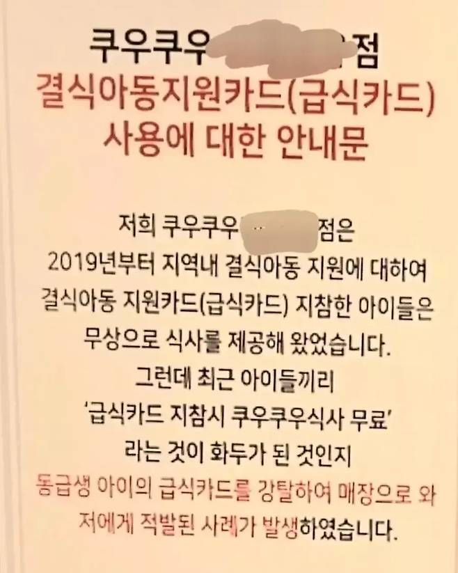 어느 쿠우쿠우 매장이 결식아동 무료 식사를 중단한 이유