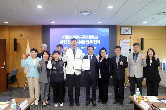 서울특별시 서울의료원(의료원장 이현석, 이하 서울의료원)은 지난 24일(목) 본관 4층 대회의실에서 국민대학교 행정대학원(대학원장 하현상)과 지역사회 보건복지 향상을 위한 관학 협력 협약을 체결했다.
