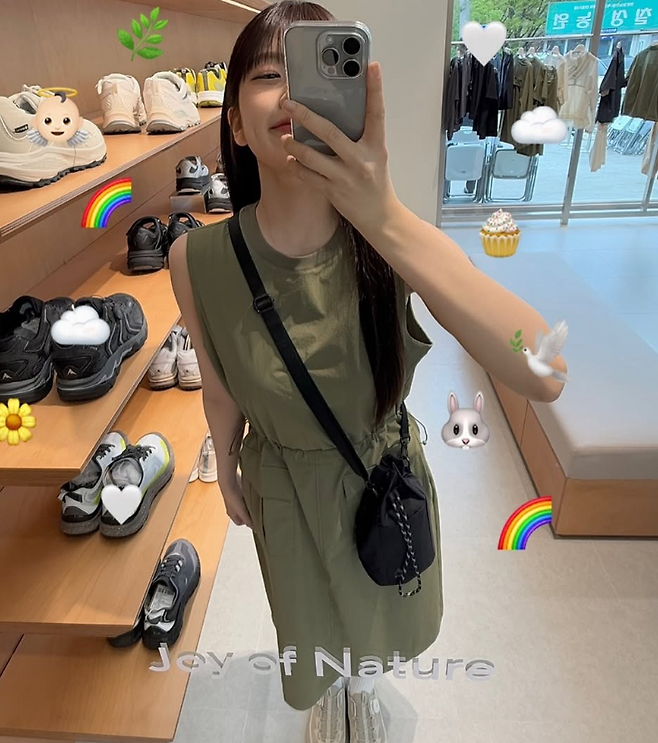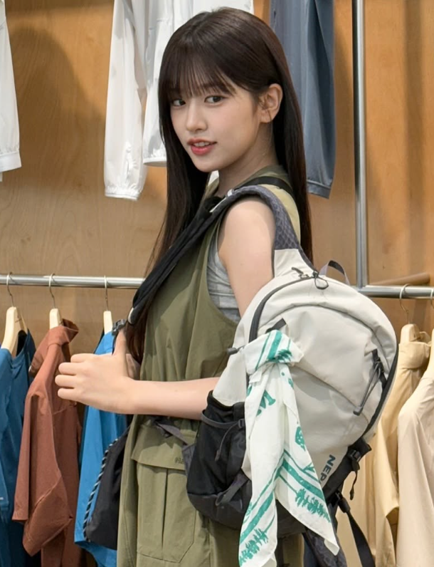 늘 센스 있는 스타일링으로 주목받는 안유진 님이 이번에는 고프코어 무드가 느껴지는 데일리룩을 선보였어요. 카키 색상의 민소매 원피스를 중심으로, 귀여우면서도 실용적인 아이템들을 매치해 자유롭고 트렌디한 매력을 보여줬답니다.