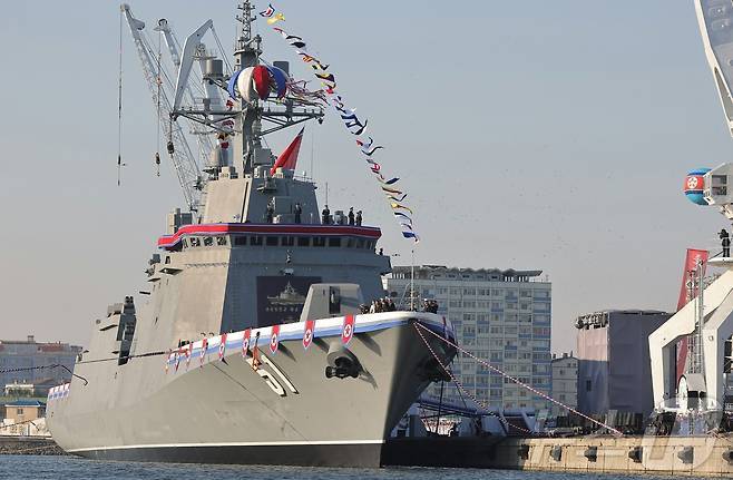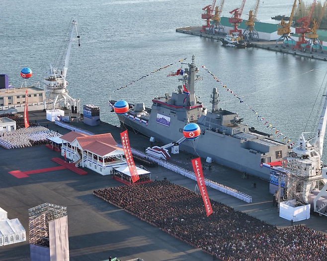 지난 5월 21일 북한의 청진조선소에서는 새로 건조된 5천톤급 구축함의 진수식이 있었는데요.
