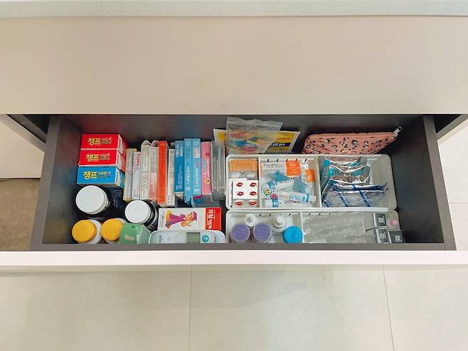 그 옆 서랍은 칸막이를 짜서 수저 보관용으로 활용하고 있어요.