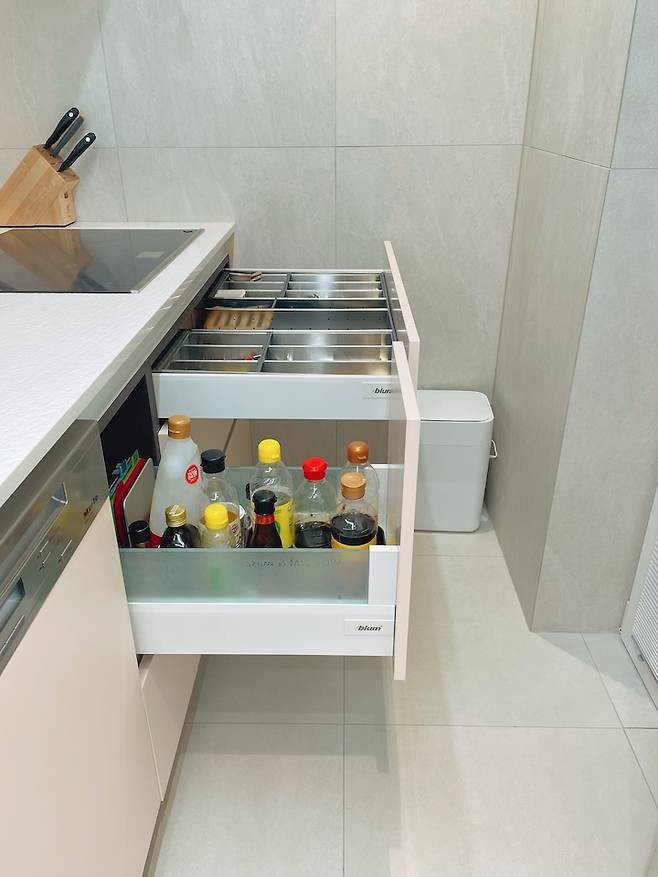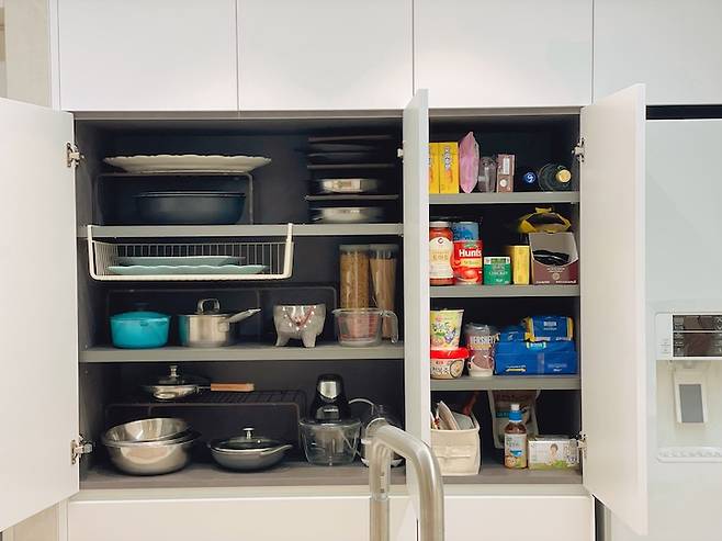평소 선반 위에 널브러져 있거나 트롤리 등을 이용해서 꺼내놓아야 하는 자잘한 살림살이들이 모두 수납되어 집이 깔끔해졌습니다.