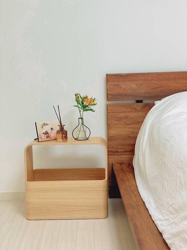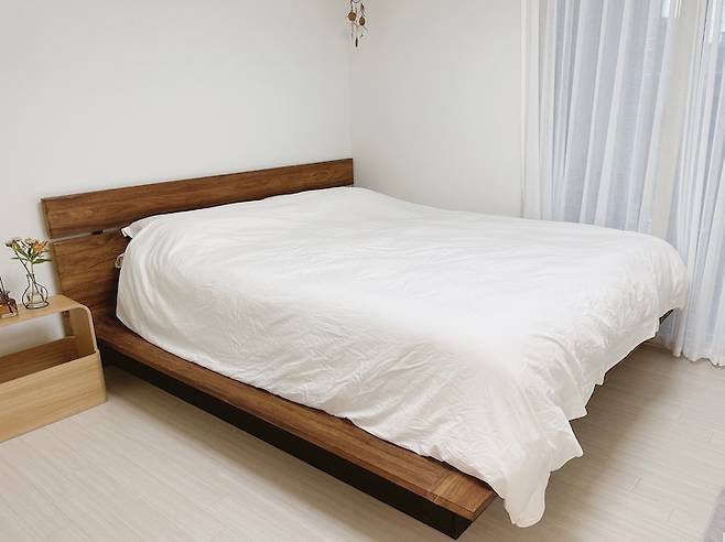 라지 킹사이즈의 큰 사이즈 침대가 꽉 들어차는 크지 않은 사이즈의 침실이지만, 불필요한 것들이 있는 것을 좋아하지 않는 덕분에 꼭 필요한 것들로만 채워서 나름 넓게 사용하고 있습니다.