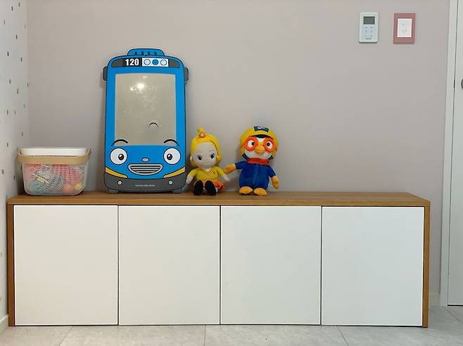 우연히 발견한 핑크색 스위치. 보자마자 아이 방 스위치로 즉석에서 결정했는데, 아이가 교구장 위로 올라가서 직접 스위치를 켜고 끌 때마다 어찌나 귀여운지 ㅎㅎ 예쁜 스위치는 정말 가성비 좋은 인테리어 아이템입니다.