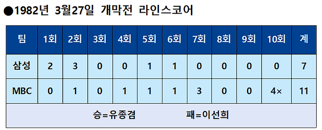 ◆KBO 1호 승리팀과 역사적 1호 기록들