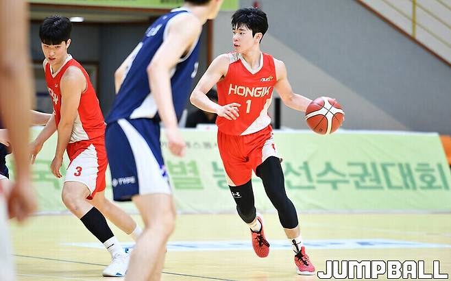 이번 대회, 손승준은 헤비 볼 핸들러가 됐다. 8월 연습경기부터 그랬다. 지금 홍대부고에는 볼 핸들링이 좋은 선수가 많지 않다. 이무진 홍대부고 코치는 대회 전 “(손)승준이가 안 뛰면 상대의 압박에 대처가 힘들다”고 했다. “경기를 풀어줄 선수가 없다”고 했다.