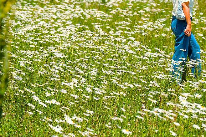 특히, 데이지 꽃밭 사이로 난 오솔길을 걸으면 꽃잎들이 바람에 흔들리며 손끝을 스치듯 지나갑니다.