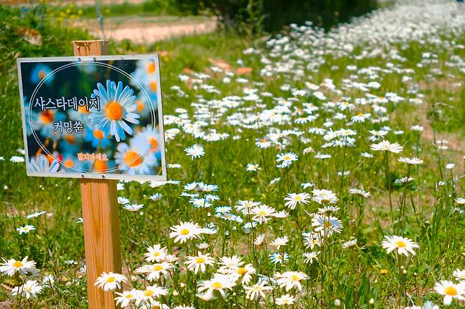 슬도초화단지의 샤스타데이지는 단순히 꽃밭을 넘어서 바다와 어우러진 특별한 풍경을 만들어냅니다.