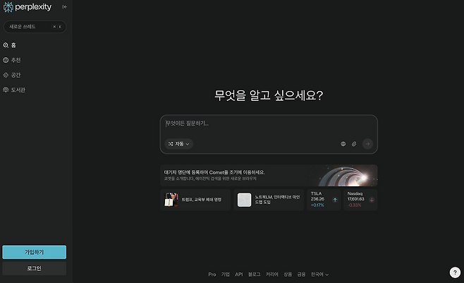 AI 챗봇 기능이 결합된 AI 서비스로, 사용자의 질문에 대해 출처를 포함한 답변을 제공하는 검색 특화 AI다.