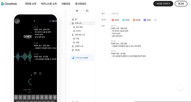 네이버에서 개발한 AI 기반 음성 인식 서비스로, 녹음 파일을 업로드하면 자동으로 텍스트로 변환한다.
