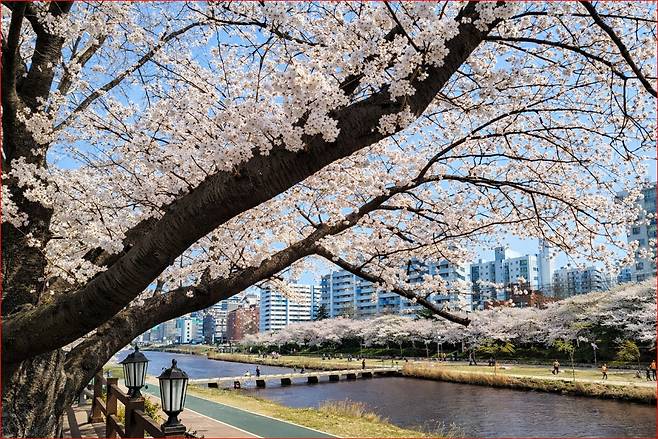 강변 산책로를 따라 걷다 보면 머리 위로는 하얀 꽃비가 내리고, 코끝으로는 유채꽃의 진한 향기가 스며듭니다. 자전거 페달을 밟거나 조깅을 즐기는 시민들의 모습은 이 평화로운 풍경에 생동감을 더해주는 또 하나의 오브제가 됩니다.