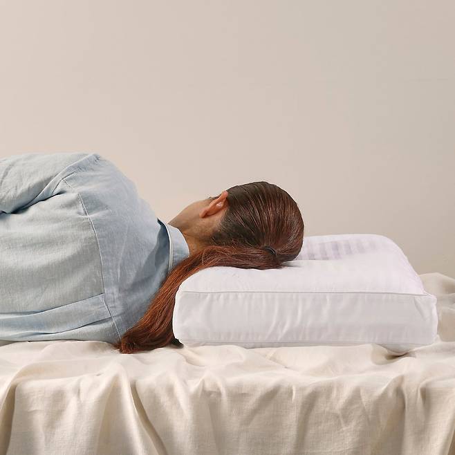 또한 너무 푹 꺼지는 베개보다는 목을 적절히 받쳐주는 탄력 있는 소재를 고르는 것이 좋습니다.
