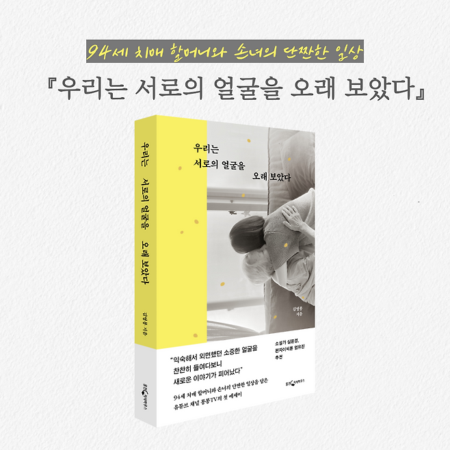 위 내용은 치매를 앓고 있는 95세 할머니와 손녀의 이야기를 담은 책 <우리는 서로의 얼굴을 오래 보았다>에서 발췌하였습니다.