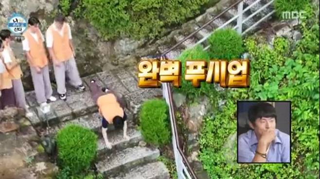 이어 푸쉬업을 하며 계단을 내려가는 108계단 수련에 도전하는 세 사람. 전현무는 “주승이가 좋아할 훈련 같아서 선무도 수련을 신청했다”라고 수련 신청의 이유를 언급했다. 이주승은 “제가 주도인으로 활약했으니 무도를 보면 무도인의 피가 끓지 않을까 했다”라고 밝혔고 코쿤 역시 “108계단이 불교적인 의미가 있는 거 같고 부처님의 비호 아래 단련하는 훈련이라서 특별할 수 있다고 생각한다”라고 밝혔다. 이어 수련이 시작되자 이주승은 거침없이 푸쉬업을 하며 계단을 내려갔고 코드 쿤스트 역시 체력을 자랑하며 계단을 내려갔다. 전현무만 다리를 긁히며 곡소리를 내며 내려가는 모습으로 웃음을 자아냈다.