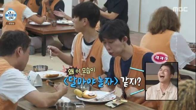 예불을 마친 후 아침 공양하러 가는 세 멤버. 건강한 식단들과 외국인 수련생을 위한 토스트까지 갖춘 뷔페식 공양간에서 알찬 아침식사를 했다. ‘소식좌’ 코쿤은 “올해 먹은 밥 중에 이게 제일 맛있다”라며 폭풍 먹방을 펼쳤다. 세 사람의 모습을 지켜보던 박나래는 “왜 이렇게 ‘달마야 놀자’ 같지?"라며 조폭이 절에 숨어든 내용의 영화를 소환하며 폭소를 자아냈다.