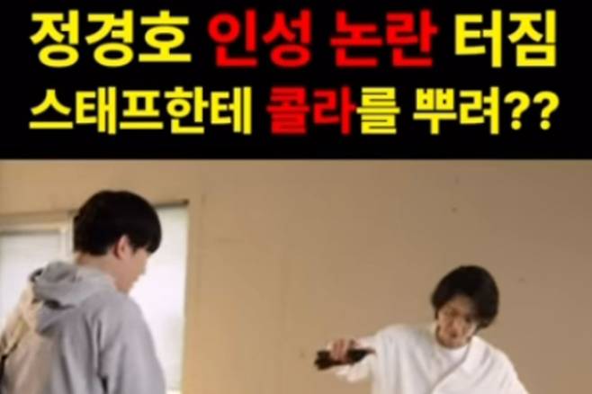 공개된 영상에는 '정경호 인성 논란 터짐 스태프한테 콜라를 뿌려?'라는 제목이 달렸습니다.