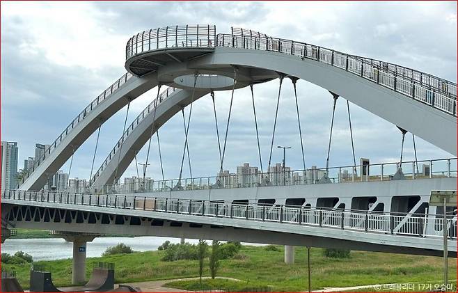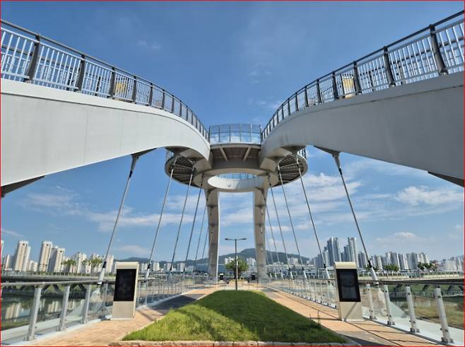 호수공원과 함께 꼭 걸어봐야 할 곳이 바로 금강보행교입니다. 국내 최초의 복층 일면 강관트러스교로 세워진 이 다리는 세종시의 랜드마크답게 독창적인 디자인을 자랑합니다.