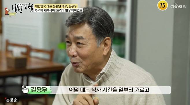 길용우는 또 "그때만 해도 드라마 속 음식 소품은 대부분 모형으로 만든 가짜였다. 그 이후로 조리실이 세팅이 되고 셰프들이 직접 요리를 만들어서 가져다 줬는데 어찌나 맛있게 하는지 촬영 끝나고 다음 장면 넘어갈 때까지 허겁지겁 먹곤 했다. 어떨 땐 일부러 식사를 거르고 그걸 먹으려고 기다리기도 했다"고 덧붙였다. 이에 허영만은 "진정한 백반기행"이라며 웃었다.