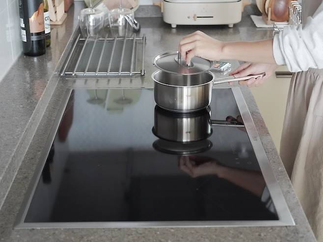 요즘은 가스레인지 대신 인덕션을 사용하는 분들이 많죠. 사용도 편리하지만 청소가 쉽다는 장점이 커 선호도가 높은 것 같아요. 위로 올라오는 요철이 없고 판판해서 오염이 생기면 깨끗이 닦아내기가 참 수월하잖아요.