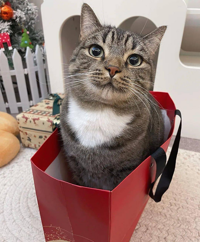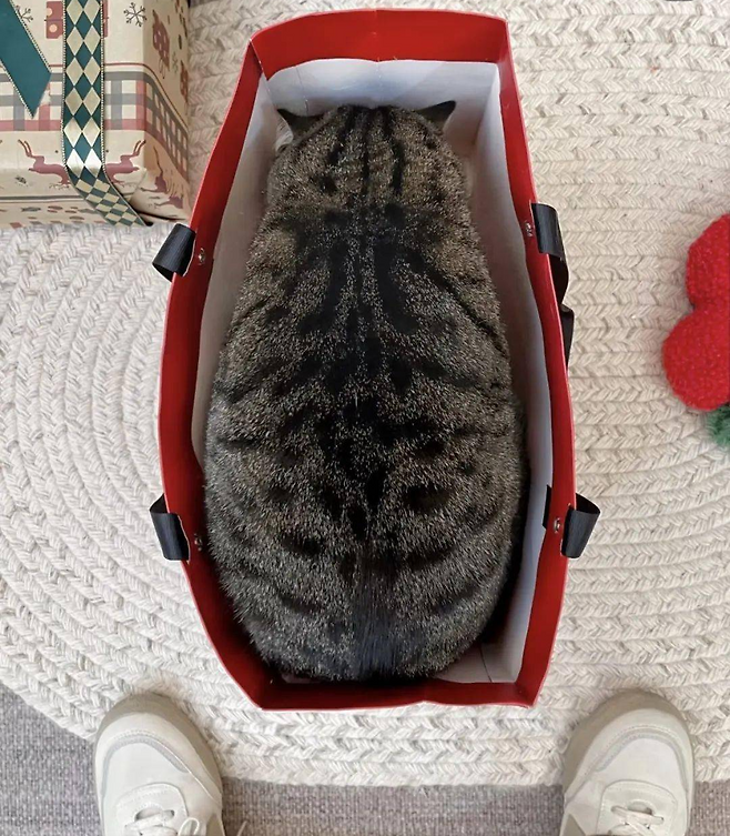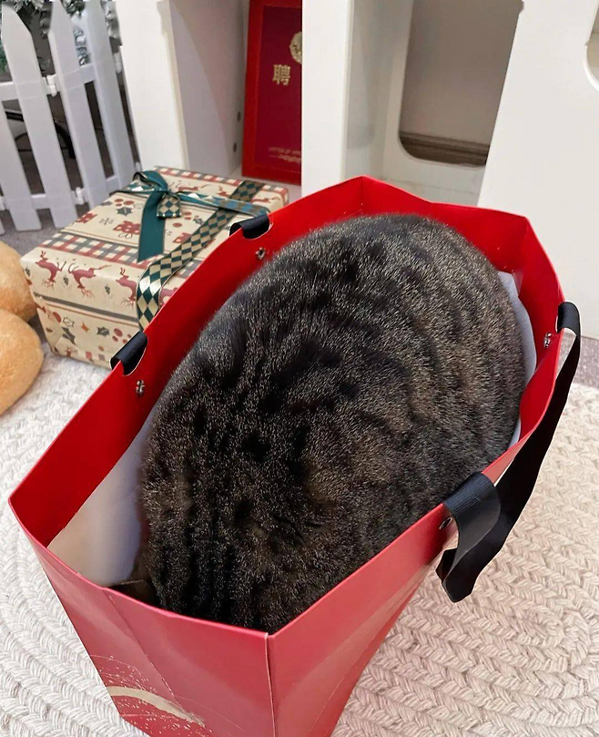 그런데 쇼핑백 안에 들어간 고양이의 모습이 마치 해삼처럼 보여 웃음을 주었습니다.