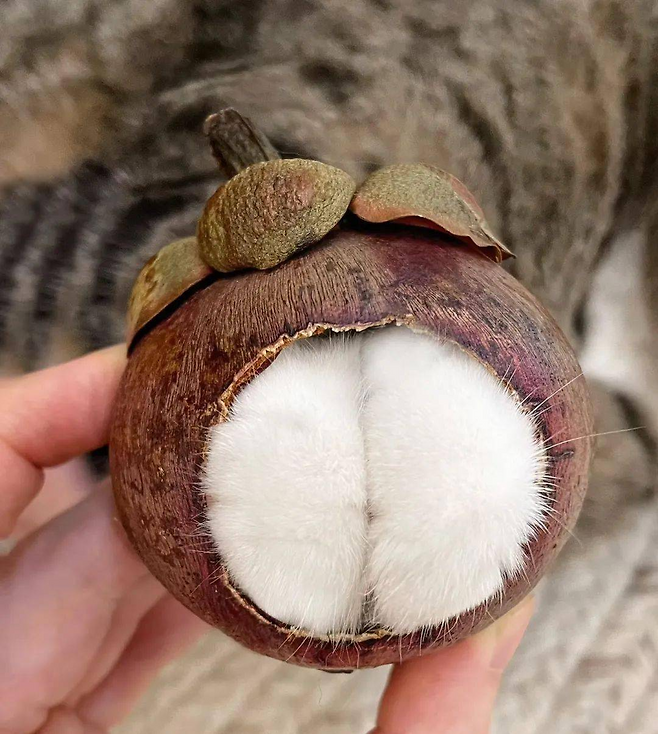 이번에는 망고스틴 껍질을 가져다가 연출했더니 망고스틴처럼 보였습니다.
