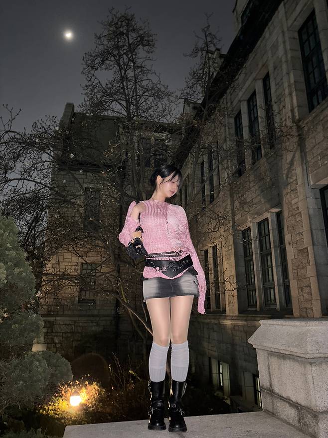 핑크컬러와 연그레이 컬러는 톤이 잘 맞아서 연그레이 니삭스를 매치했어요.