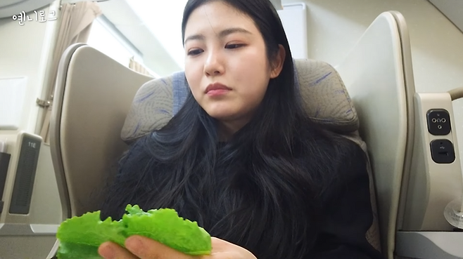 샐러드와 홍차인 애피타이저로 시작한 기내식은 고기가 메인인 한식 위주로 음식이 나왔다. 신예은은 음식을 먹기에 앞서 물수건으로 손을 닦고 상추에 고기를 얹어 야무지게 쌈을 먹었다.