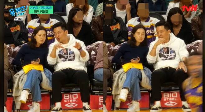 정유미는 23일 방송된 tvN 예능프로그램 '유 퀴즈 온 더 블럭'에 게스트로 출연해 다양한 이야기를 나눴다. 그중 정유미는 이서진과 함께 미국 NBA 경기를 관람하는 모습이 포착된 당시를 떠올리기도.