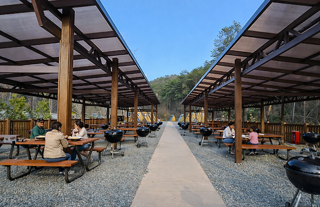 오두막에서는 숯불 사용이 불가능하기 때문에 바비큐를 원하면 별도 테이블을 예약해야 합니다. 대신 도시락이나 간단한 음식으로 ‘피크닉 느낌’으로 즐기면 가장 만족도가 높습니다.