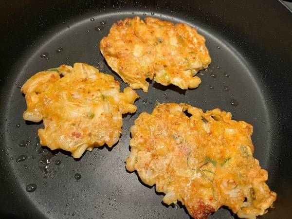 김치전은 기름을 넉넉히 두르고 센 불에서 부쳐내는 음식입니다