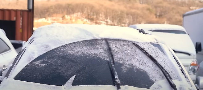 두 번째로는 부득이하게 야외에 주차하는 경우에 활용할 수 있는 방법은 성에 방지 커버를 사용하는 방법입니다. 꼭 전용 제품이 아니어도 골판지 등으로도 전면 유리를 막는 방법이 있습니다. 이는 유리창에 얼음 결정이 생기는 걸 최대한 막아주는 방법 중 하나입니다.