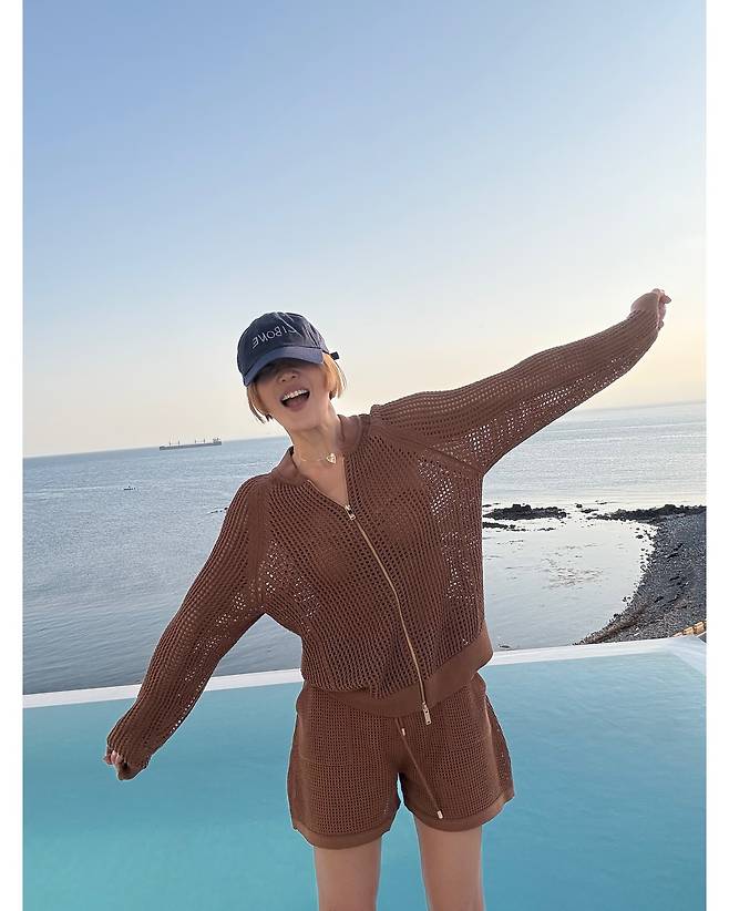최은경이 선택한 이번 룩은 여름에도 감각적인 스타일을 놓치지 않는 니트 셋업이에요.