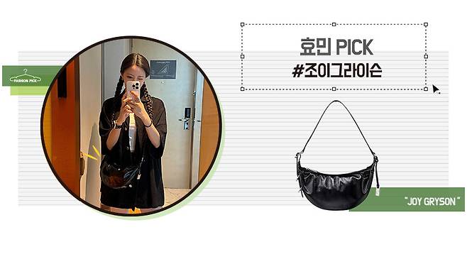 블랙 가방은 워낙 다양한 룩에 매치하기도 좋아서 효민처럼 블랙 코디에도 깔끔하게 매치하기 딱 좋아요 ♡