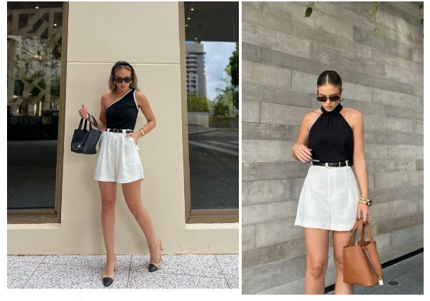 여름룩에 빠질 수 없는 블랙 & 화이트 조합으로 상의는 블랙, 하의는 화이트 그리고
