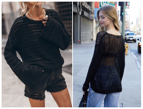 시스루 니트에 블랙 롱 스커트나 데님 팬츠 매치하고