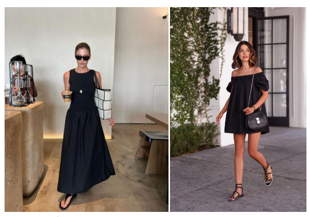 블랙 원피스에 샌들 매치하면