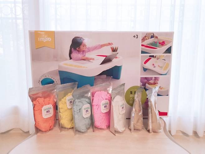 테이블+기본 모래 색상이 원래구성이고, 색깔이 들어간 모래는 더 추가구매한 품목이에요.